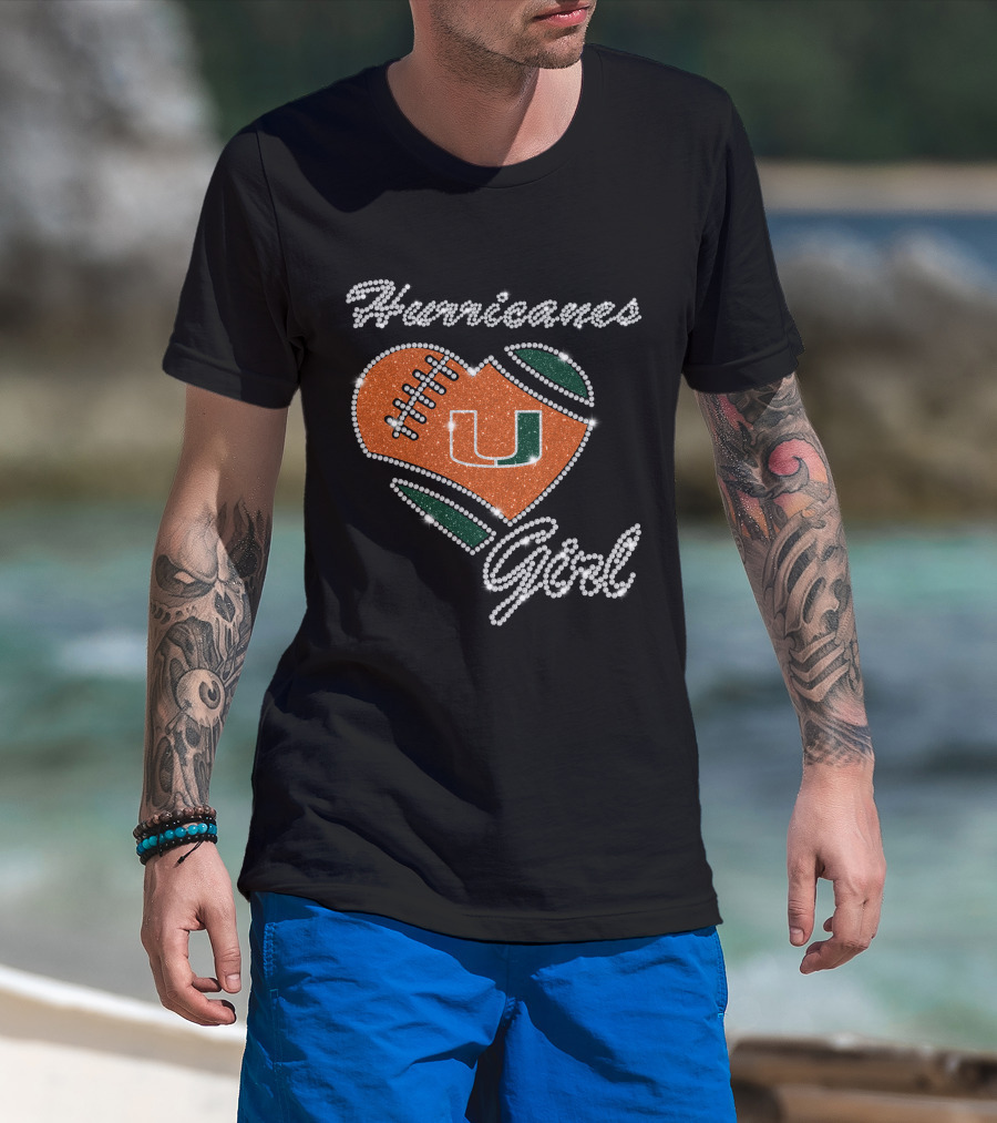 Hurricanes Girl Miami U Football Heart T-Shirt