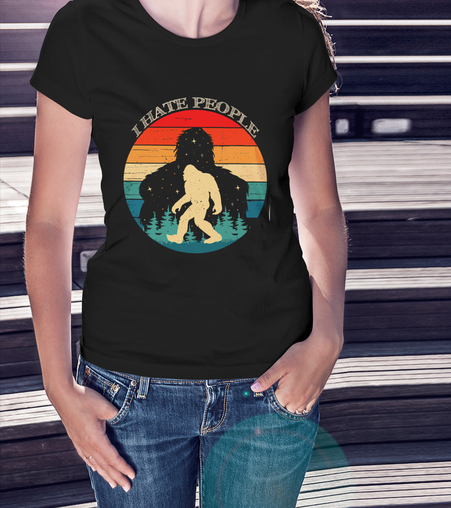 I Hate People Bigfoot Retro Sunset Forest Scene T-Shirt
