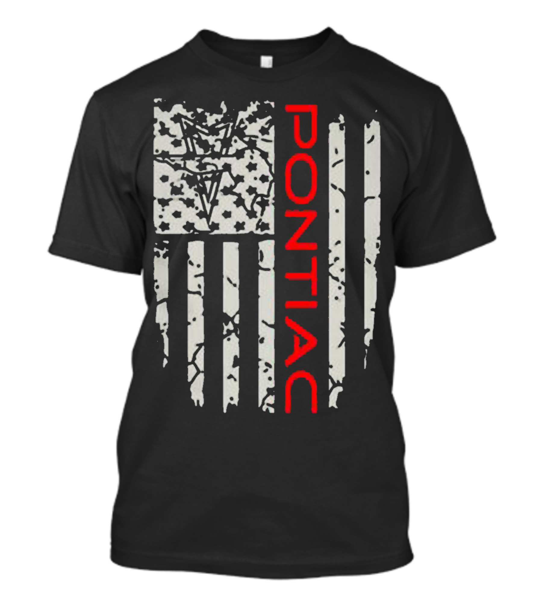 The Pontiac Distressed American Flag with Firebird Emblem T-shirt is designed for everyday wear and a consistent fit. Fabric is pre-shrunk ring-spun cotton with durable stitching. See the size chart below for exact measurements.