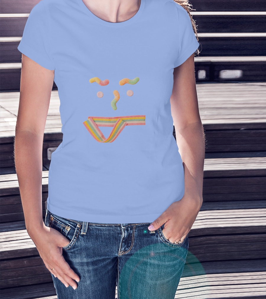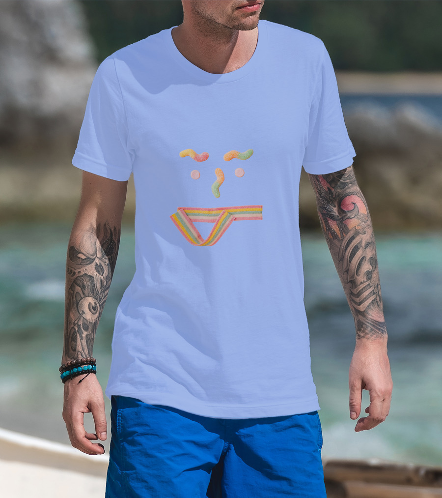 The Sugar Smile Candy Face Rainbow T-shirt is designed for everyday wear and a consistent fit. Fabric is pre-shrunk ring-spun cotton with durable stitching. See the size chart below for exact measurements.