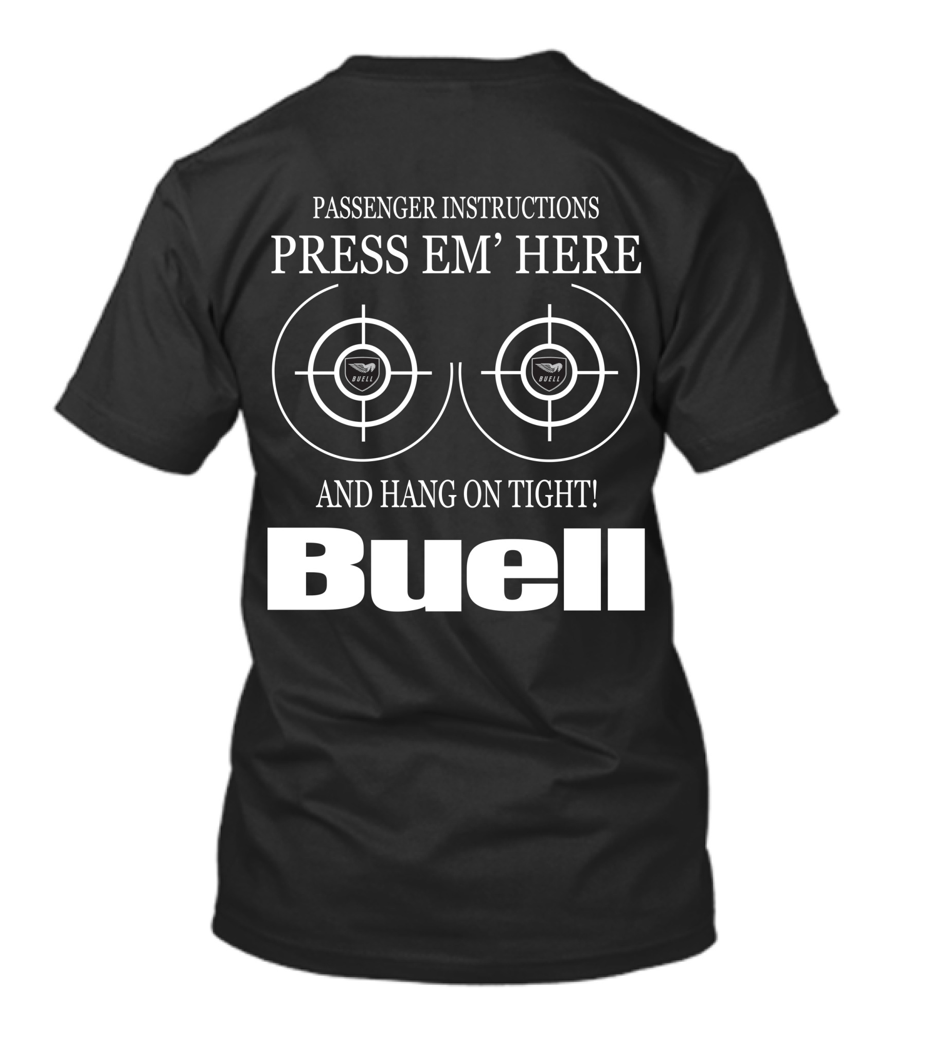 PASSENGER INSTRUCTIONS PRESS EM' HERE AND HANG ON TIGHT BUELL T-Shirt