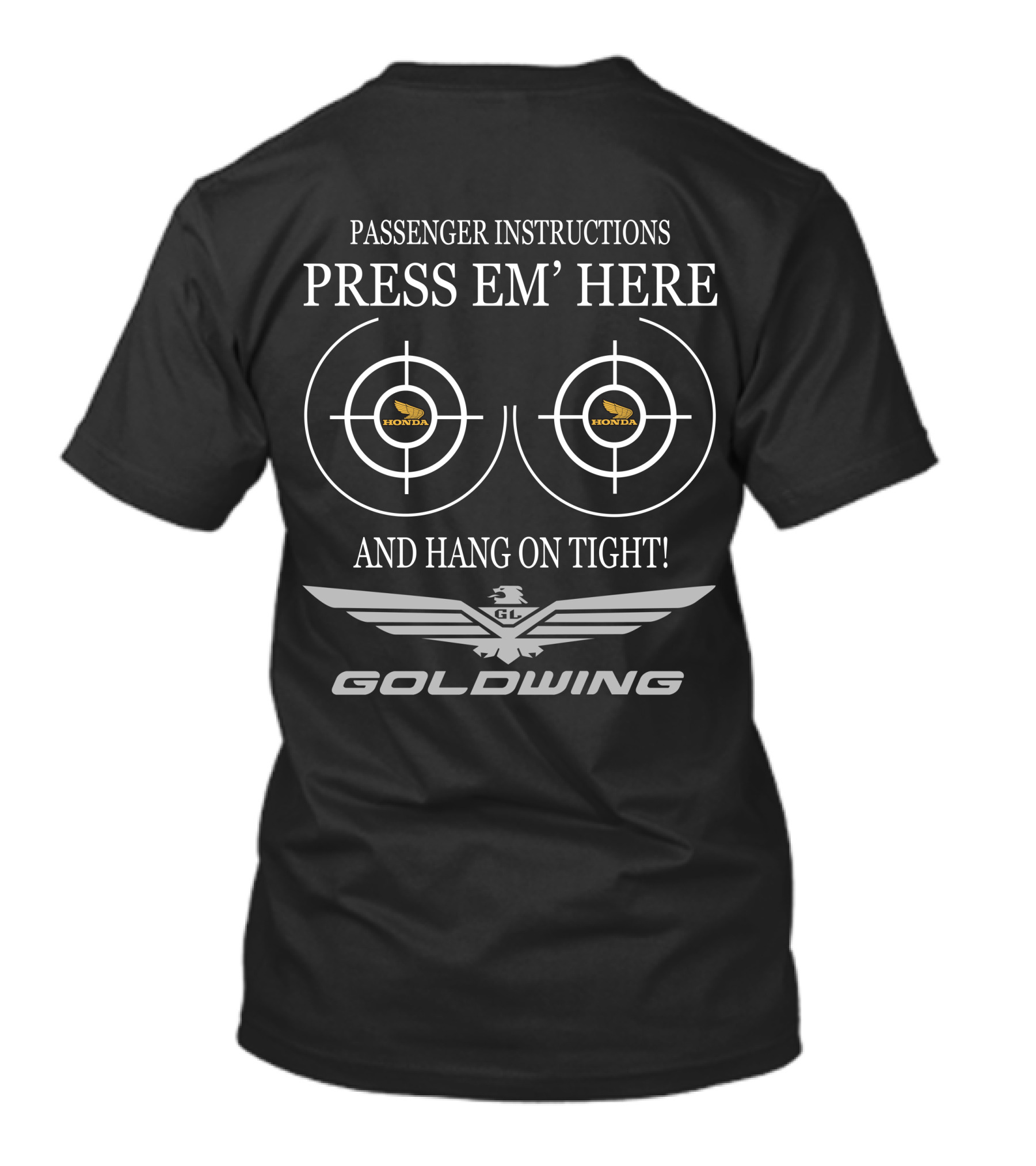 Honda Goldwing Passenger Instructions Press Em' Here And Hang On Tight T-Shirt