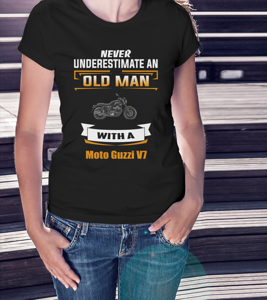 NEVER UNDERESTIMATE AN OLD MAN WITH A Moto Guzzi V7 T-Shirt