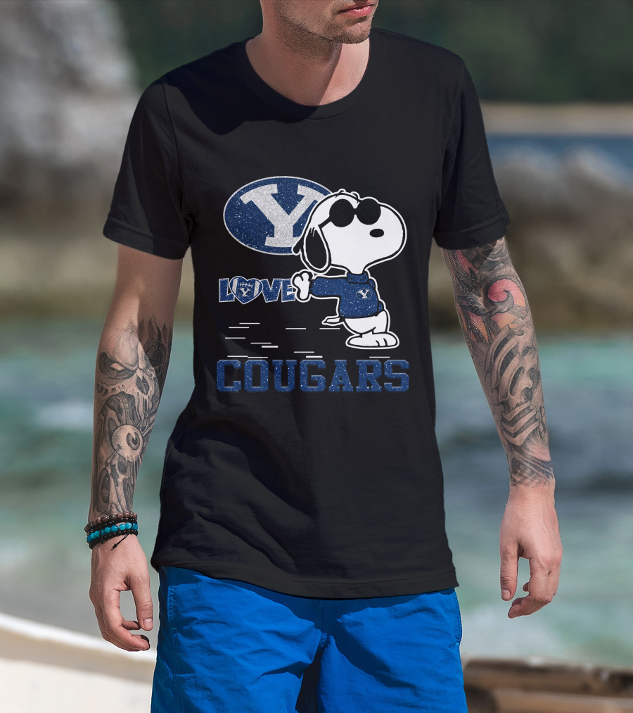 The Love BYU Cougars Snoopy Y T-shirt is designed for everyday wear and a consistent fit. Fabric is pre-shrunk ring-spun cotton with durable stitching. See the size chart below for exact measurements.