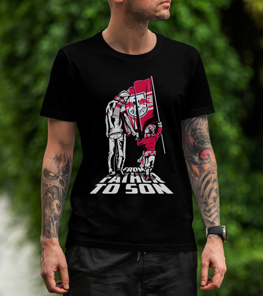 The RB Leipzig From Father To Son Flag T-shirt is designed for everyday wear and a consistent fit. Fabric is pre-shrunk ring-spun cotton with durable stitching. See the size chart below for exact measurements.
