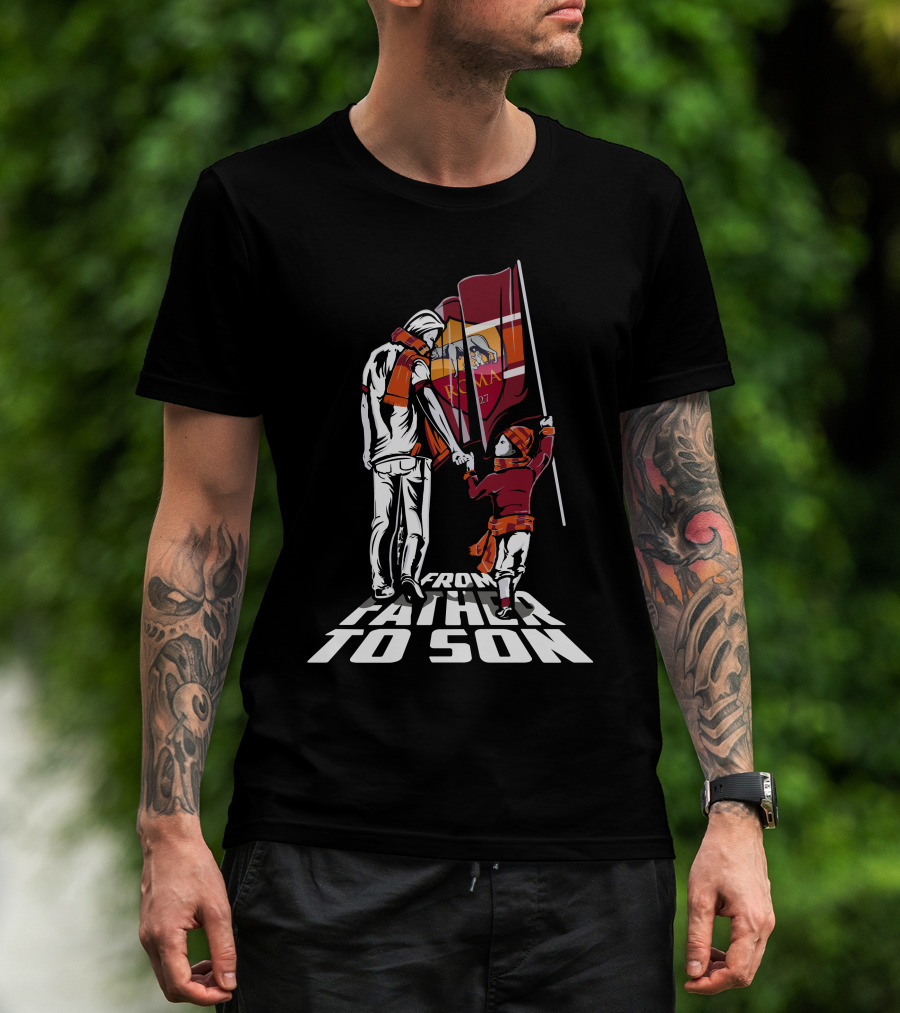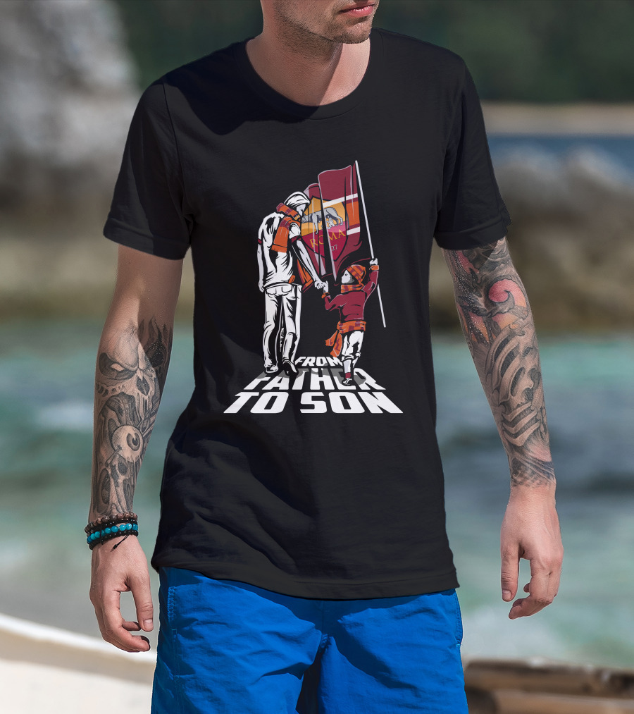 The AS Roma From Father to Son T-shirt is designed for everyday wear and a consistent fit. Fabric is pre-shrunk ring-spun cotton with durable stitching. See the size chart below for exact measurements.