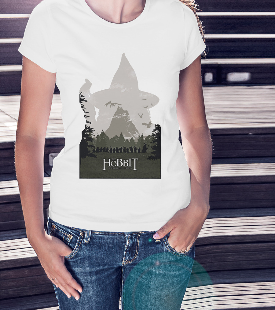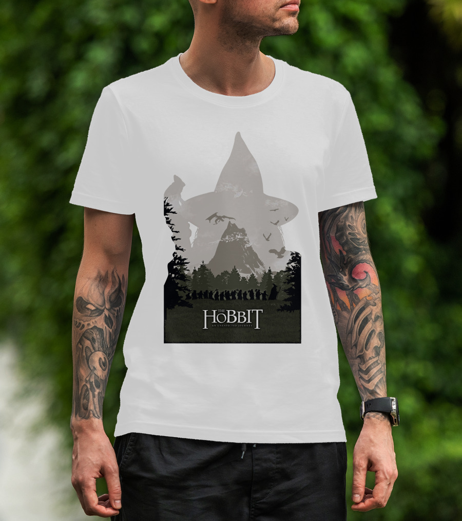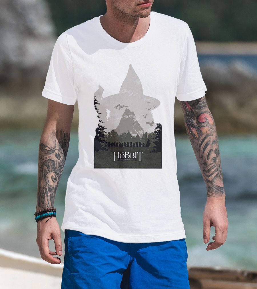 The Hobbit An Unexpected Journey Silhouette Scene With Gandalf Hat And Forest Background T-Shirt
