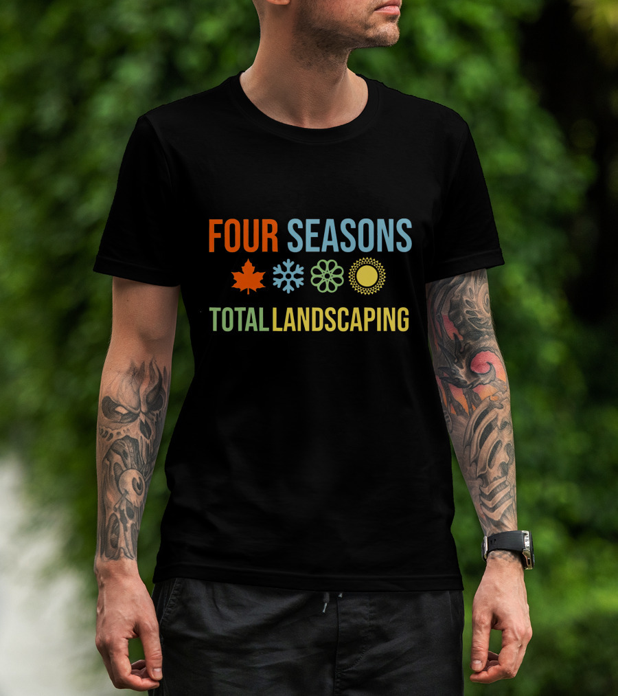 The Four Seasons Total Landscaping Autumn Leaf Snowflake Floral Sun T-shirt is designed for everyday wear and a consistent fit. Fabric is pre-shrunk ring-spun cotton with durable stitching. See the size chart below for exact measurements.