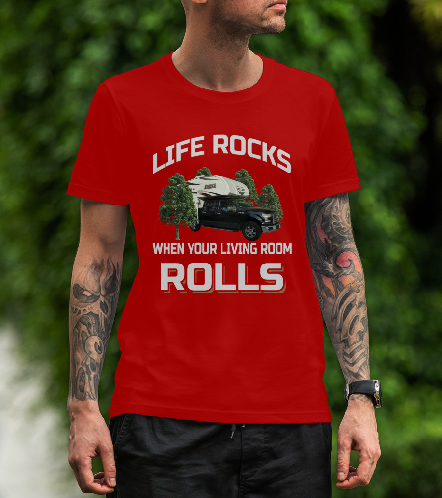 The Lance 650 Life Rocks When Your Living Room Rolls T-shirt is designed for everyday wear and a consistent fit. Fabric is pre-shrunk ring-spun cotton with durable stitching. See the size chart below for exact measurements.