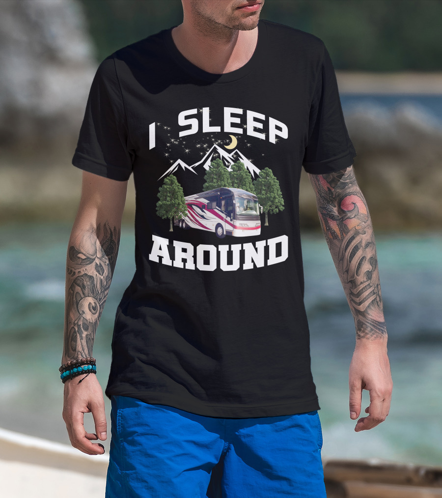I SLEEP AROUND 2008 American Eagle 42r Mountain RV Adventure Camping T-Shirt