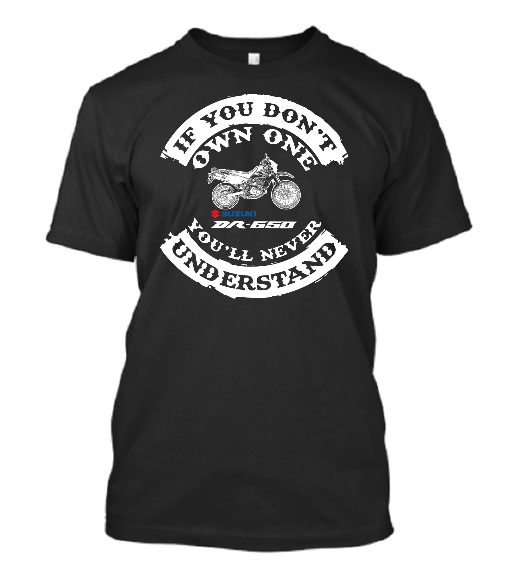 The If You Don't Own One Suzuki DR650 You'll Never Understand T-shirt is designed for everyday wear and a consistent fit. Fabric is pre-shrunk ring-spun cotton with durable stitching. See the size chart below for exact measurements.