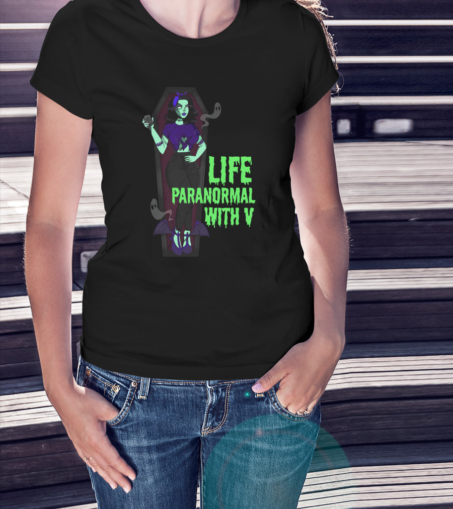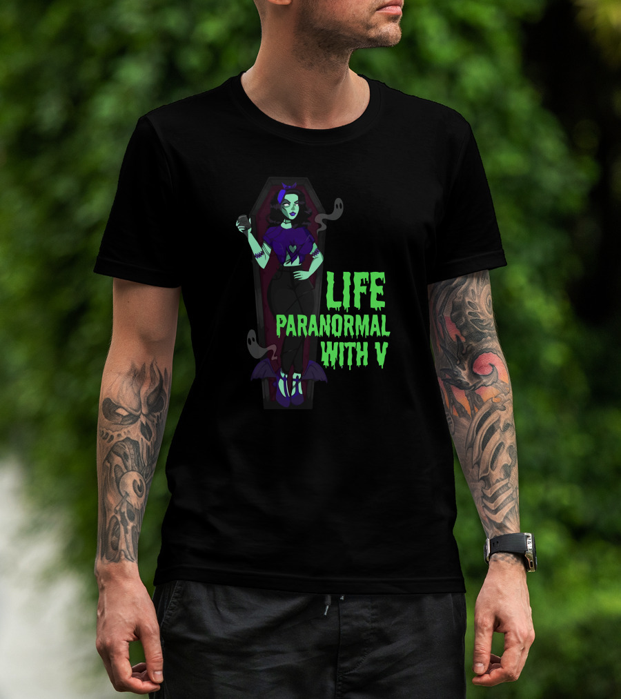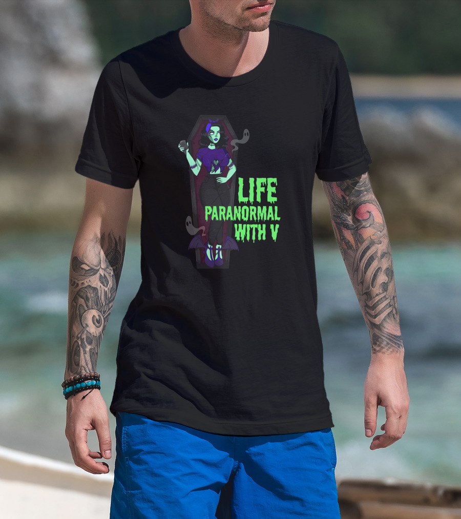 Life Paranormal With V Gothic Ghostly Coffin Character T-Shirt