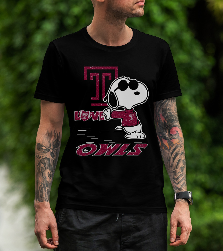The Snoopy Temple Owls Love T Sports T-shirt is designed for everyday wear and a consistent fit. Fabric is pre-shrunk ring-spun cotton with durable stitching. See the size chart below for exact measurements.