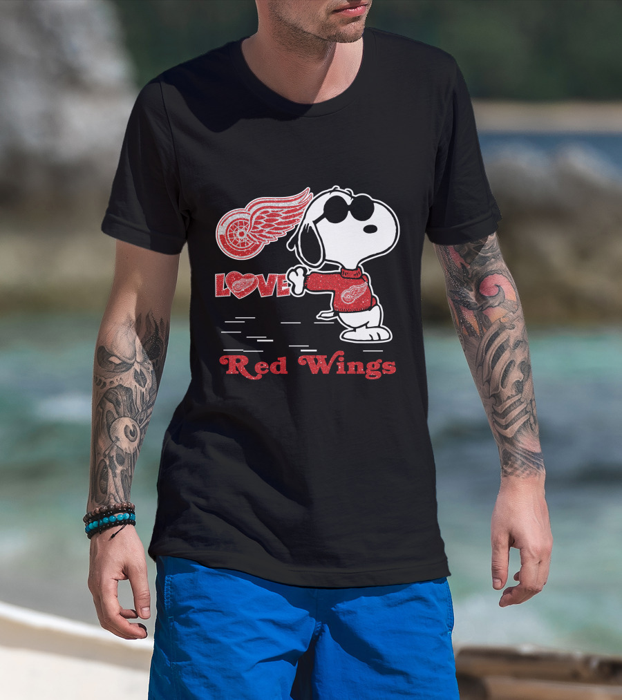 Snoopy Love Detroit Red Wings Peanuts Hockey Fan T-Shirt