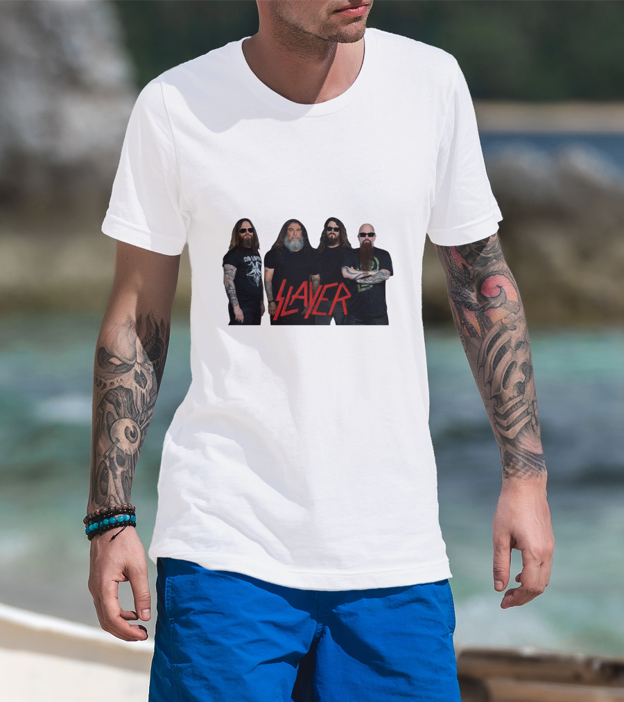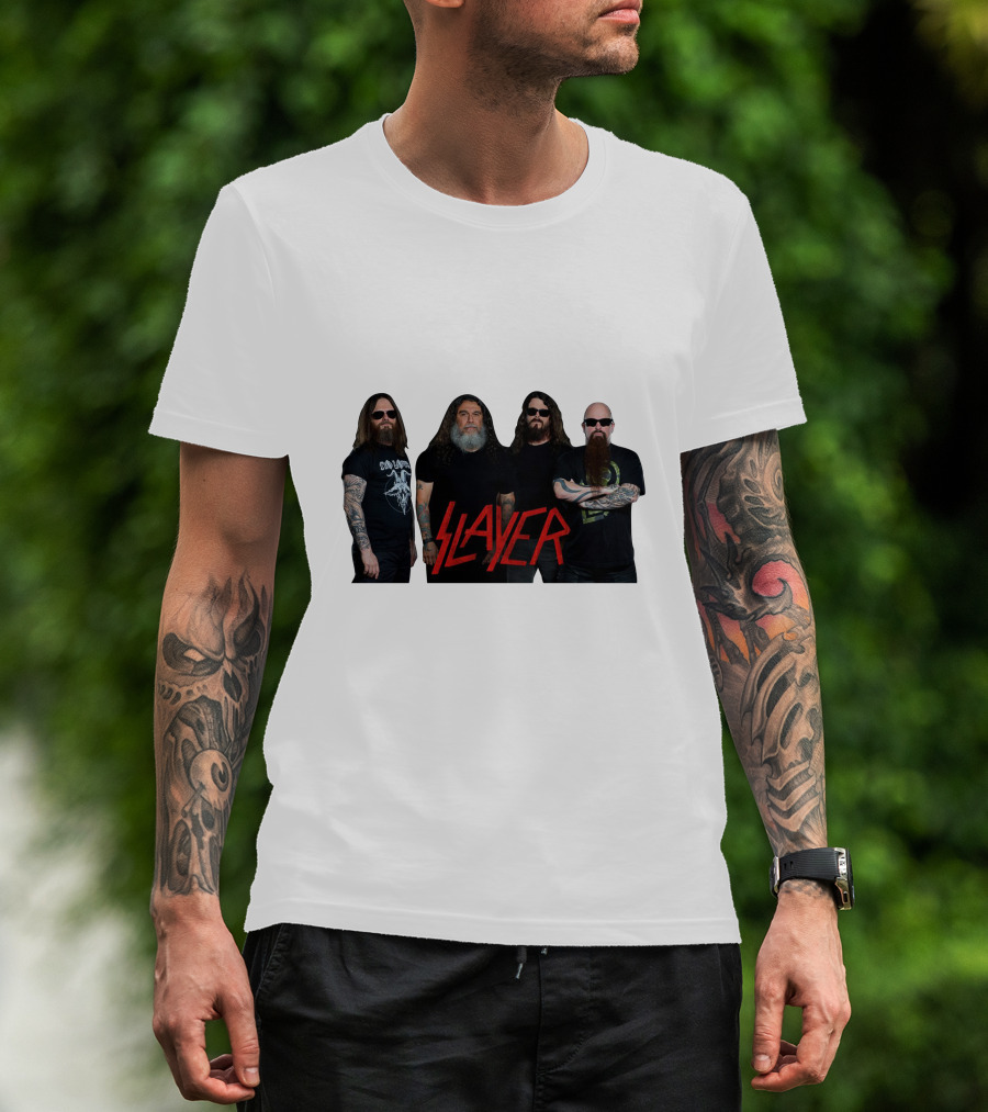 The Slayer Classic Band Member Pose T-shirt is designed for everyday wear and a consistent fit. Fabric is pre-shrunk ring-spun cotton with durable stitching. See the size chart below for exact measurements.