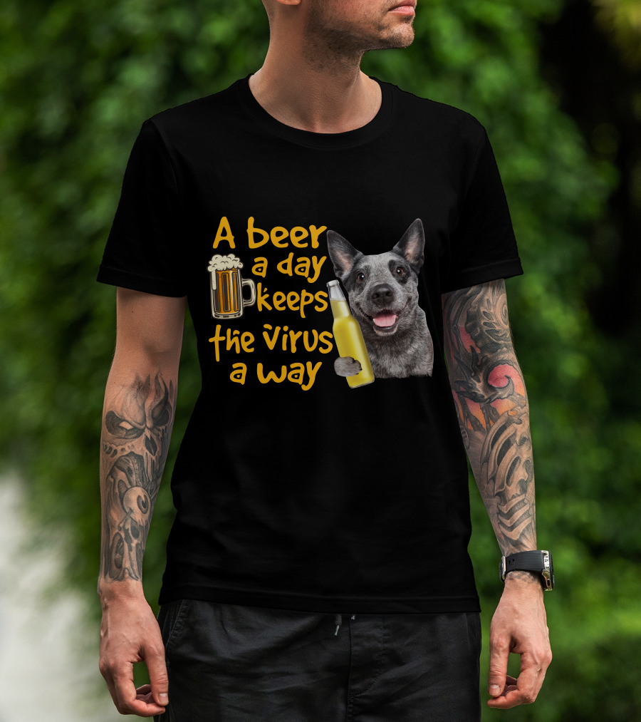 A Beer A Day Keeps The Virus Away Australian Cattle Dog Holding Beer T-Shirt