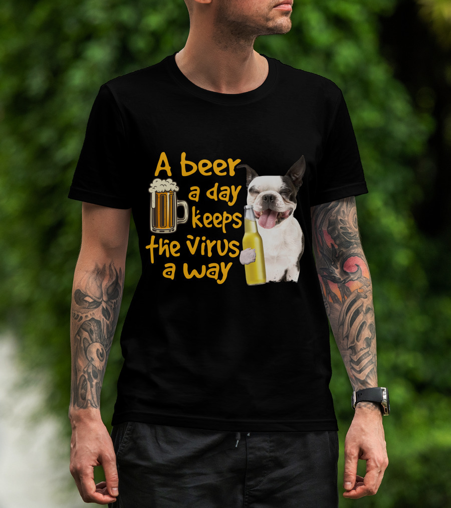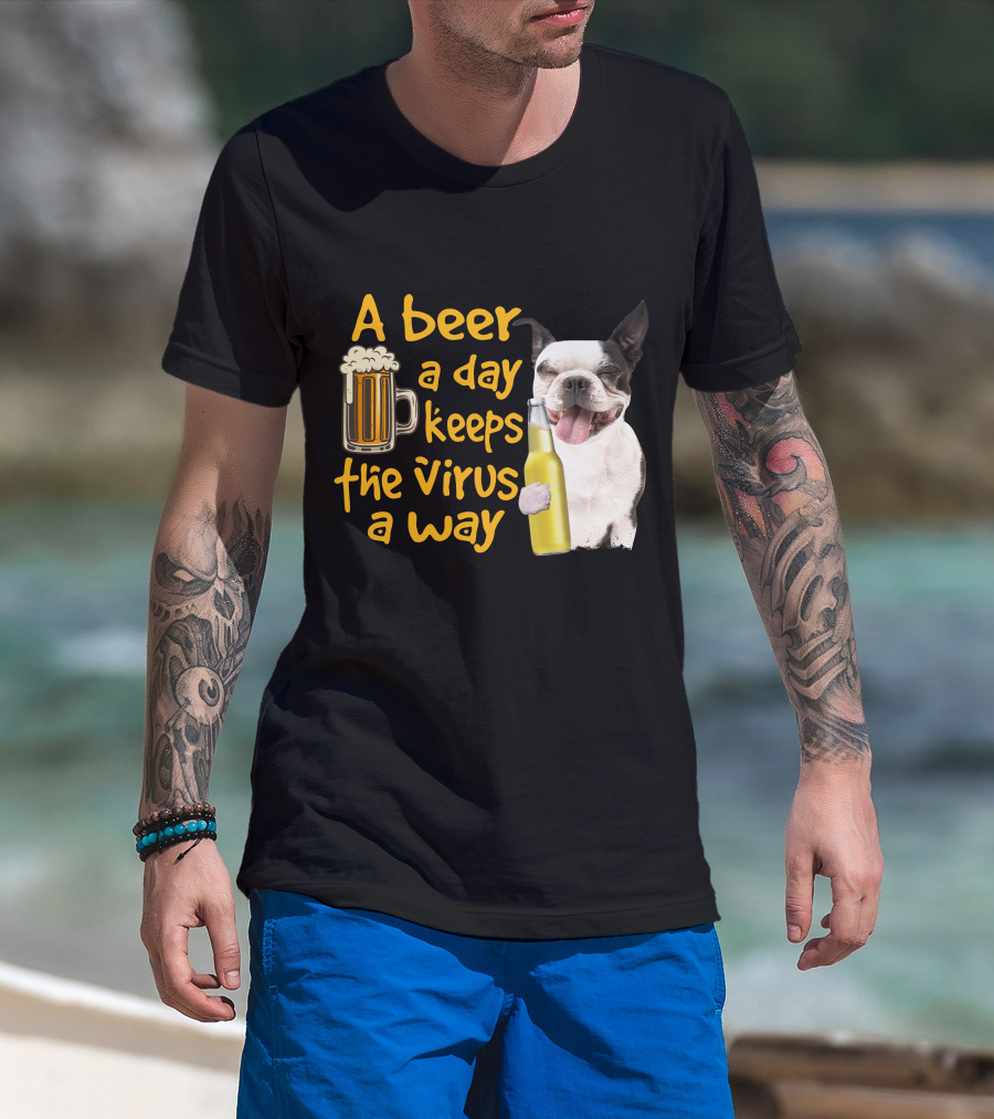 A Beer A Day Keeps The Virus Away Boston Terrier And Beer T-Shirt