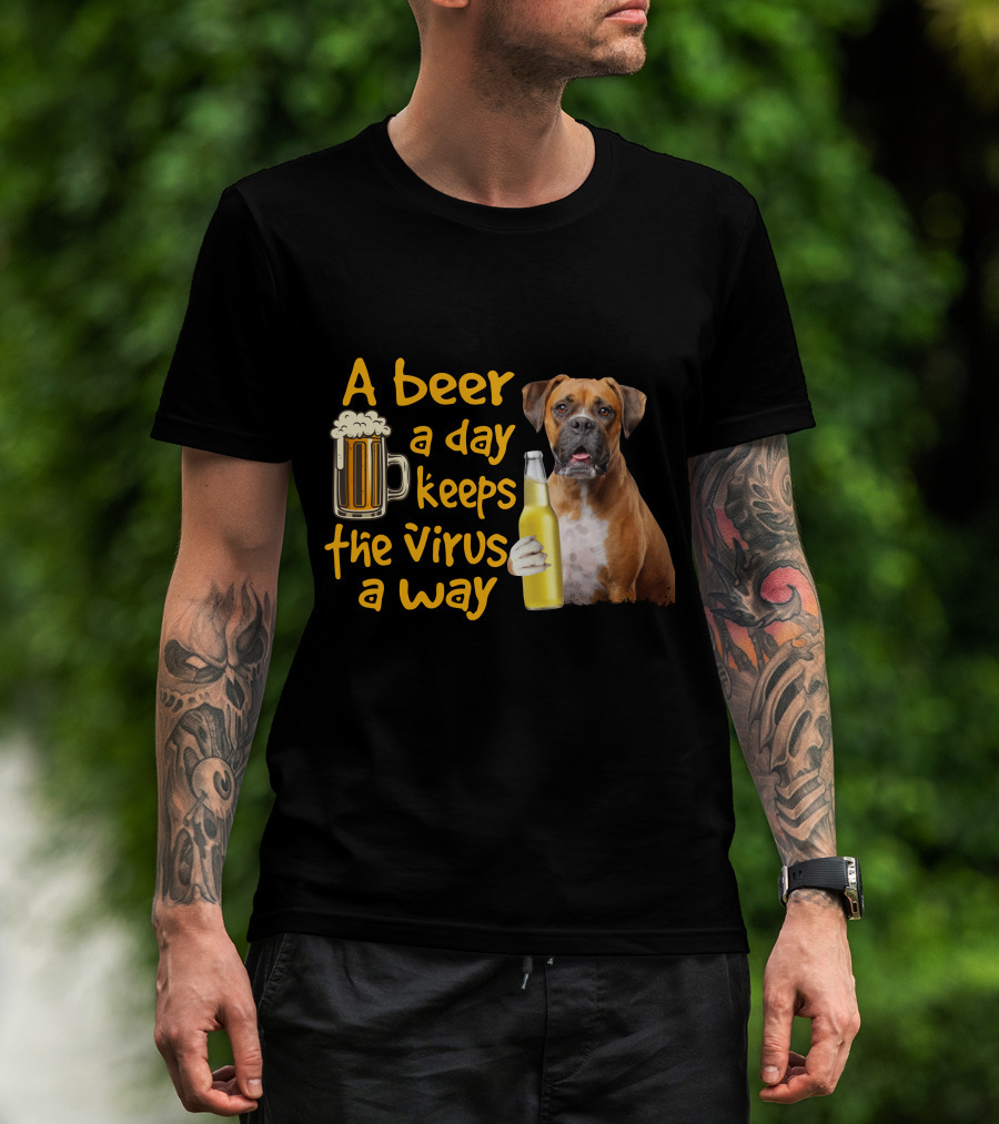 A Beer A Day Keeps The Virus Away Funny Boxer Dog Beer T-Shirt