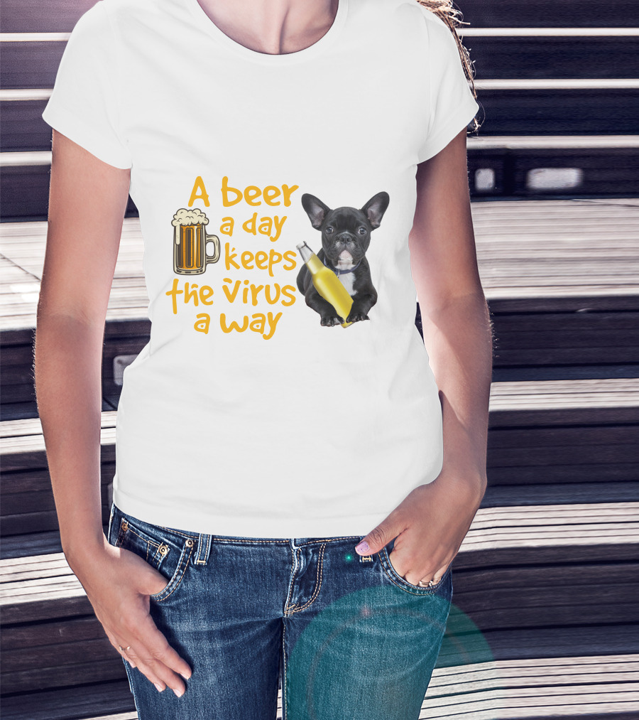 A Beer A Day Keeps The Virus Away French Bulldog With Beer T-Shirt
