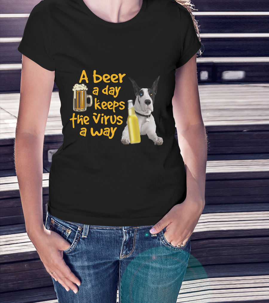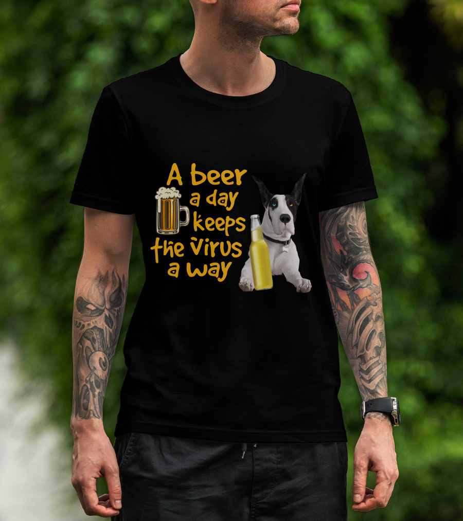 A Beer A Day Keeps The Virus Away Great Dane With Beer Bottles T-Shirt