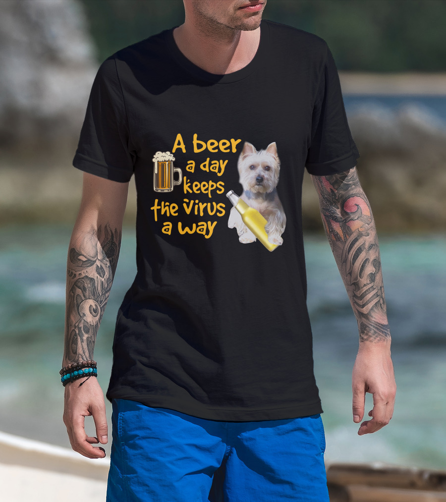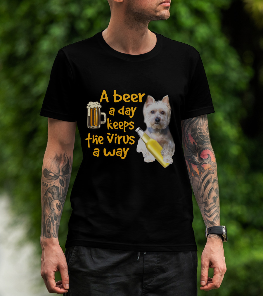 A Beer A Day Keeps The Virus Away Funny Westie And Beer T-Shirt