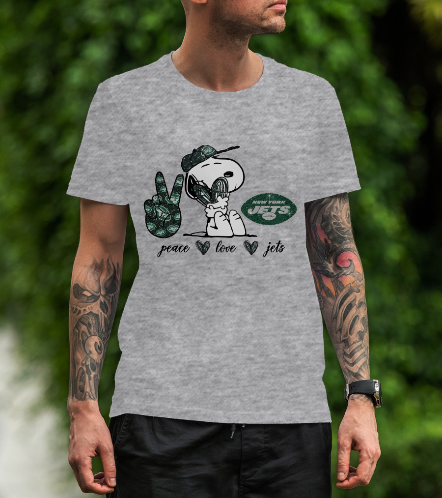 Peace Love New York Jets Snoopy Football Fan T-Shirt
