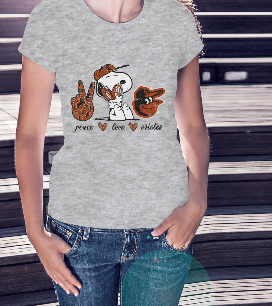 Peace Love Orioles Snoopy Style Baltimore Orioles T-Shirt