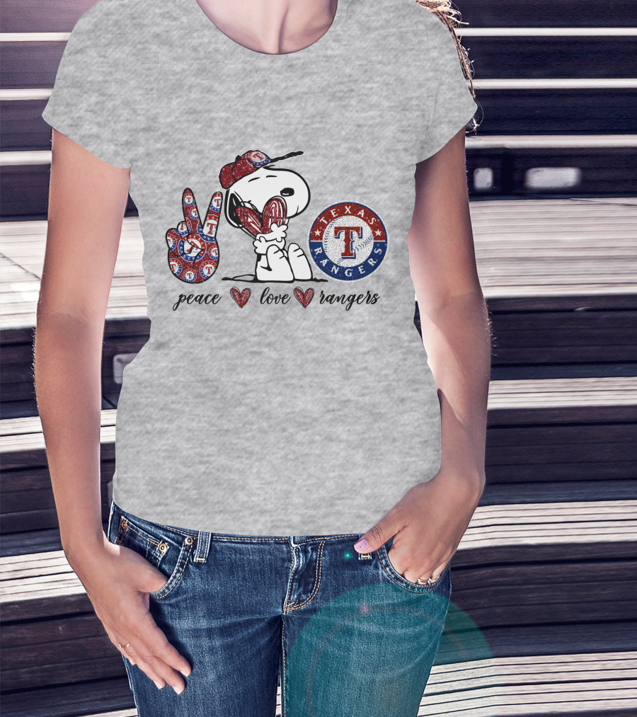 Peace Love Texas Rangers Snoopy Baseball Fan T-Shirt