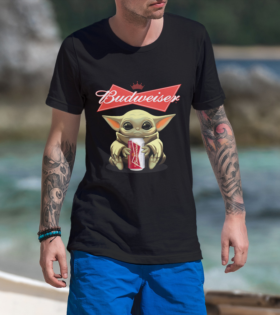 Budweiser Baby Yoda Holding Beer Can T-Shirt