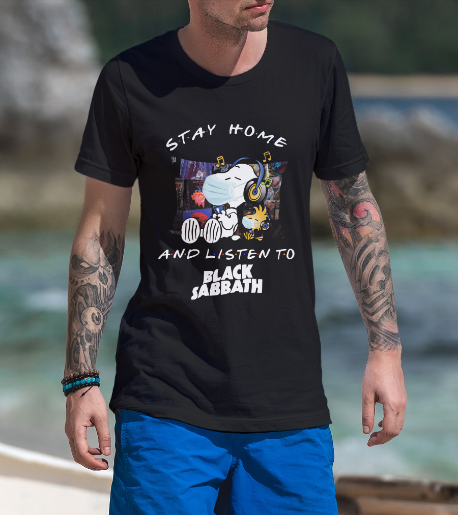Stay Home And Listen To Black Sabbath Snoopy Woodstock Headphones T-Shirt