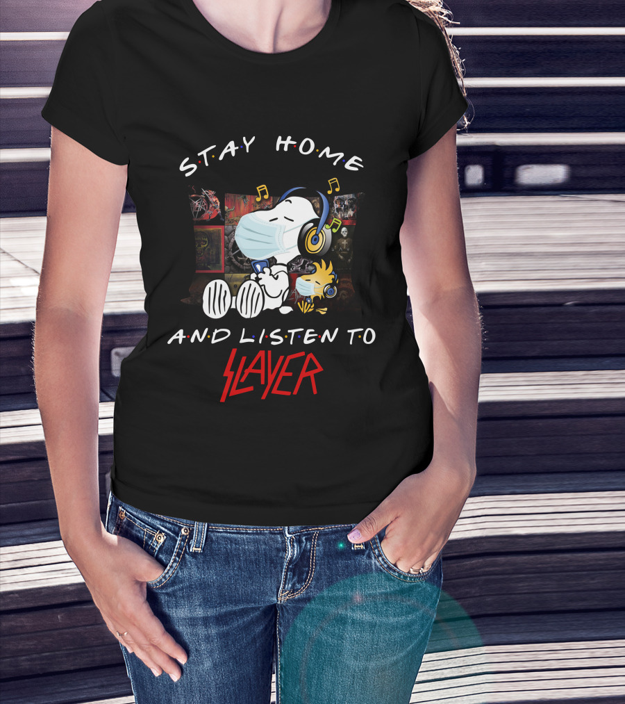 Stay Home And Listen To Slayer Snoopy And Woodstock Music T-Shirt
