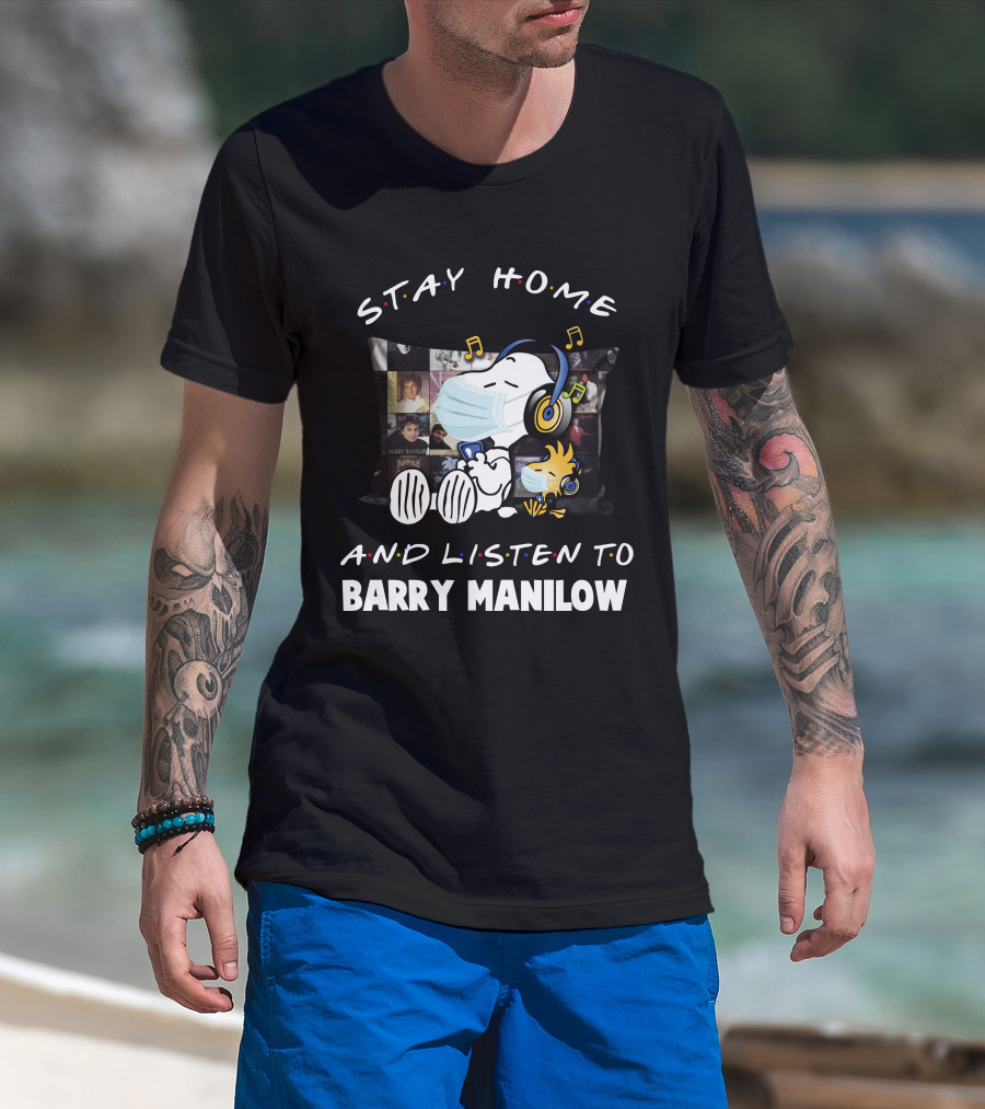 Stay Home And Listen To Barry Manilow Snoopy Wearing Mask Headphones T-Shirt
