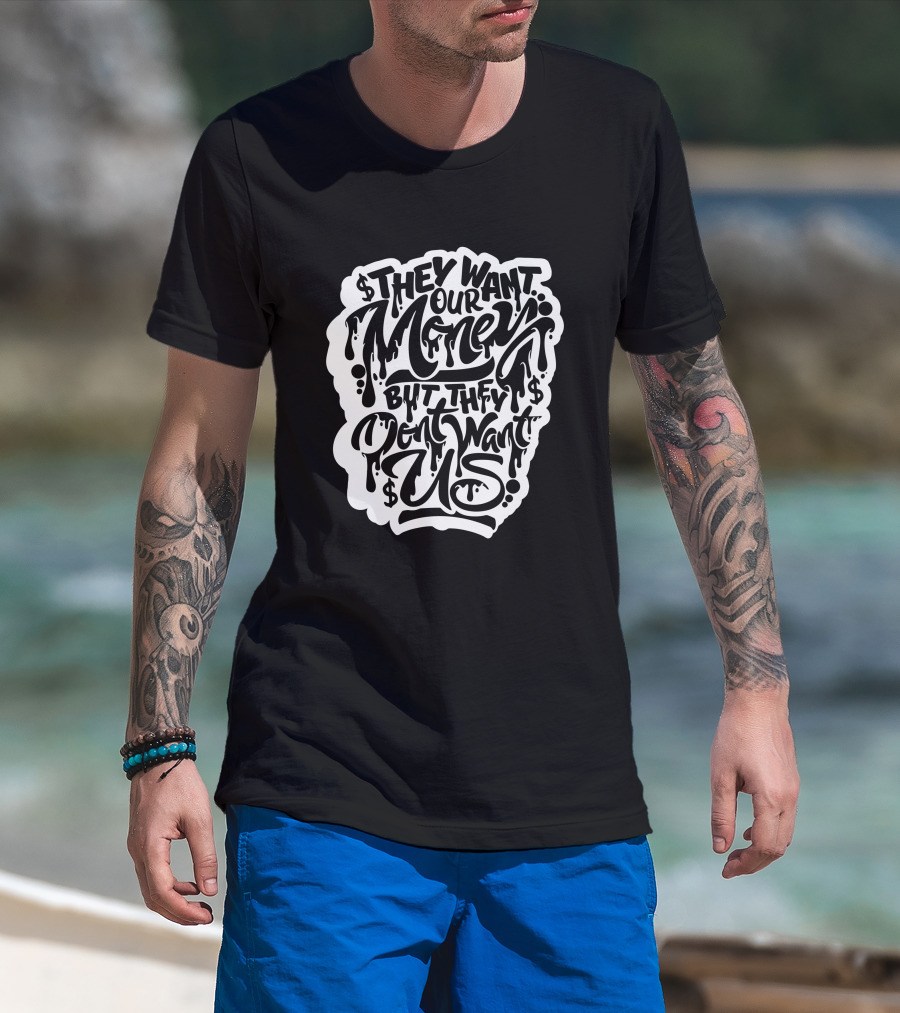 The They Want Our Money But They Don't Want Us T-shirt is designed for everyday wear and a consistent fit. Fabric is pre-shrunk ring-spun cotton with durable stitching. See the size chart below for exact measurements.
