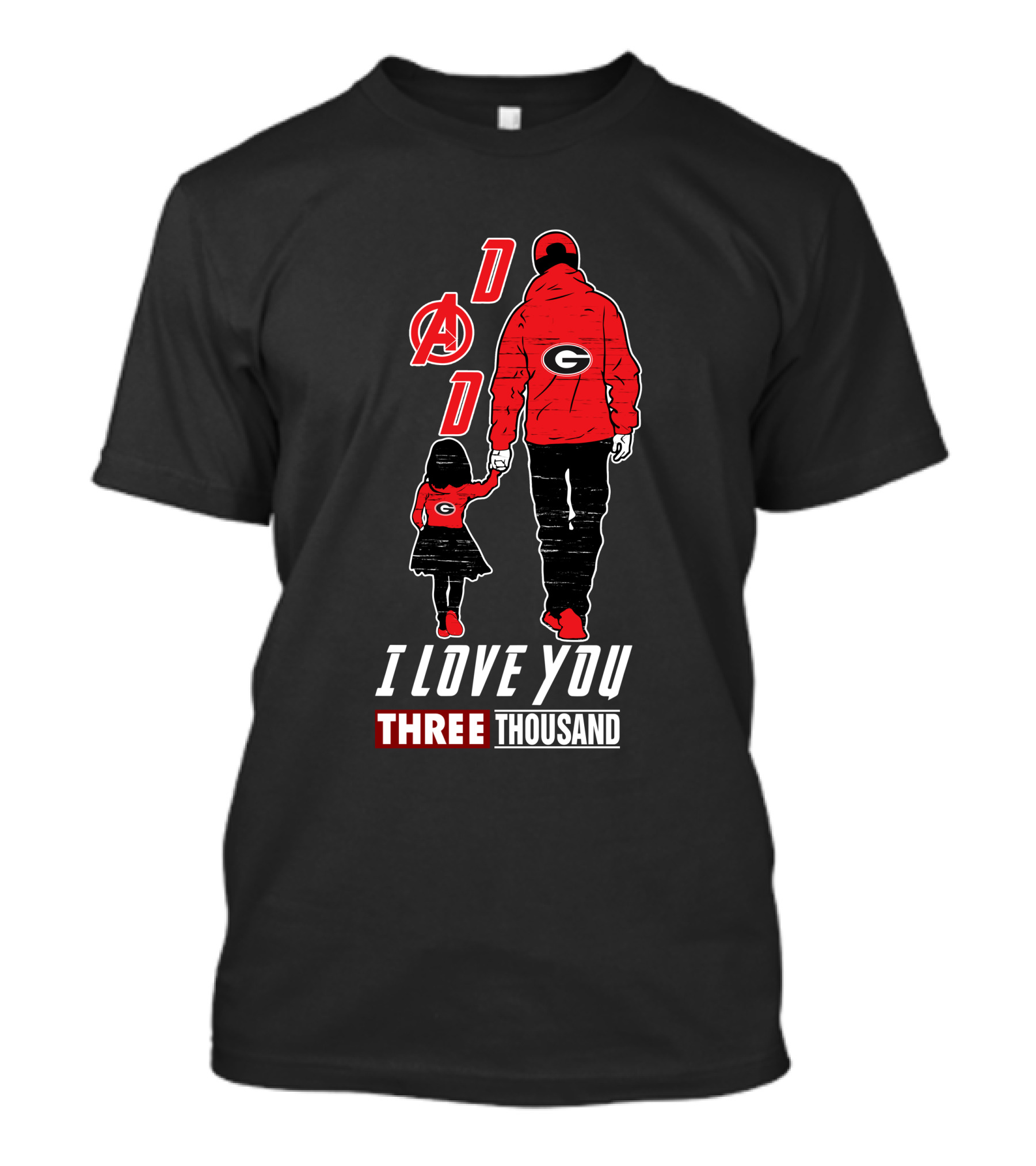 The Avengers Dad Georgia Bulldogs I Love You Three Thousand T-shirt is designed for everyday wear and a consistent fit. Fabric is pre-shrunk ring-spun cotton with durable stitching. See the size chart below for exact measurements.