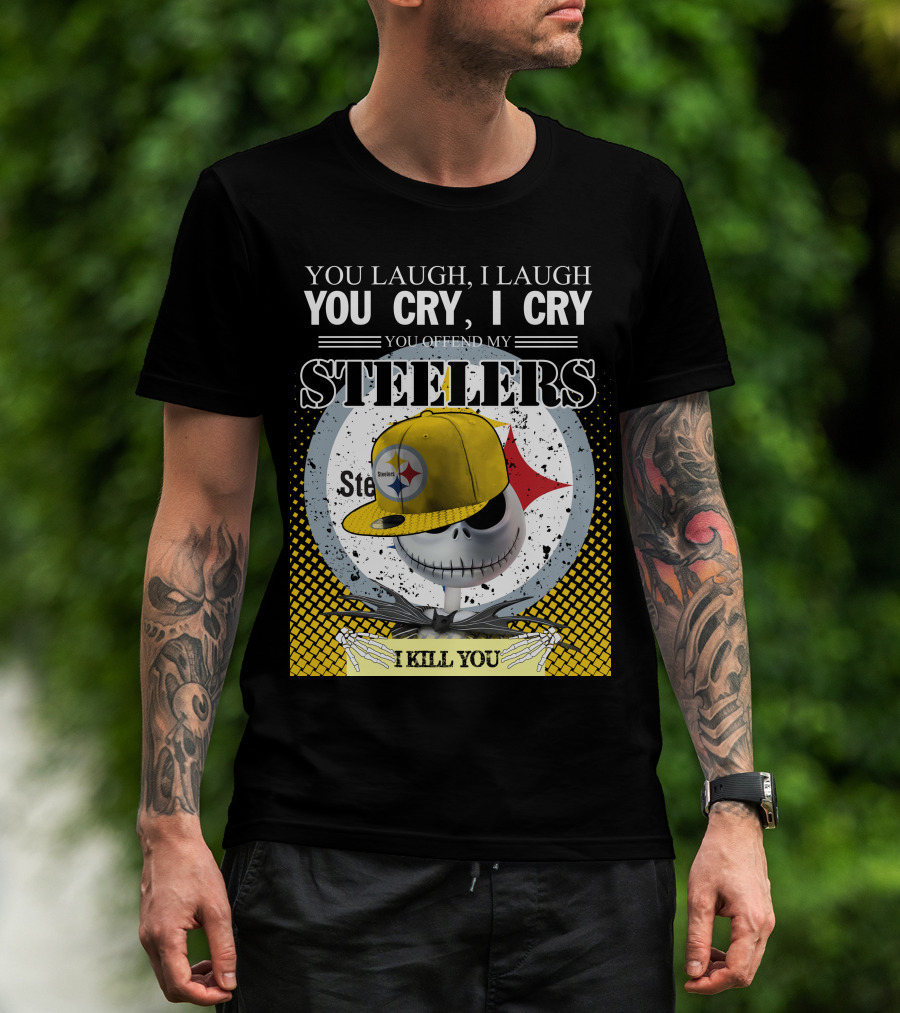 Pittsburgh Steelers Jack Skellington You Laugh I Laugh You Cry I Cry You Offend My Steelers I Kill You T-Shirt