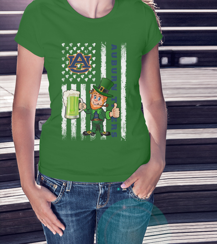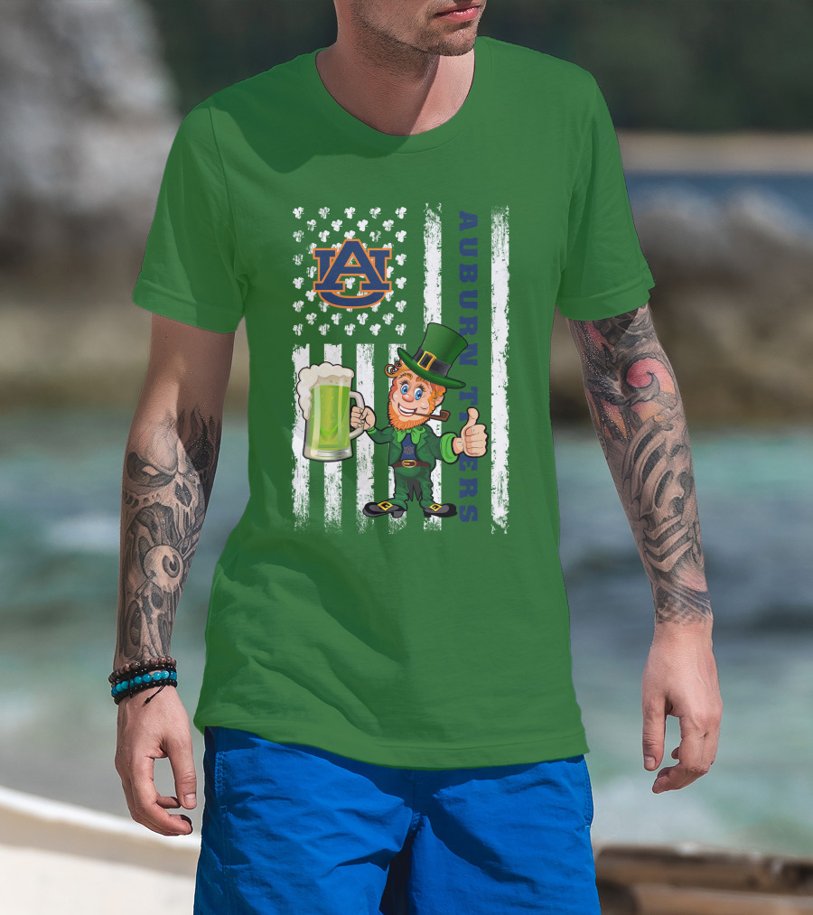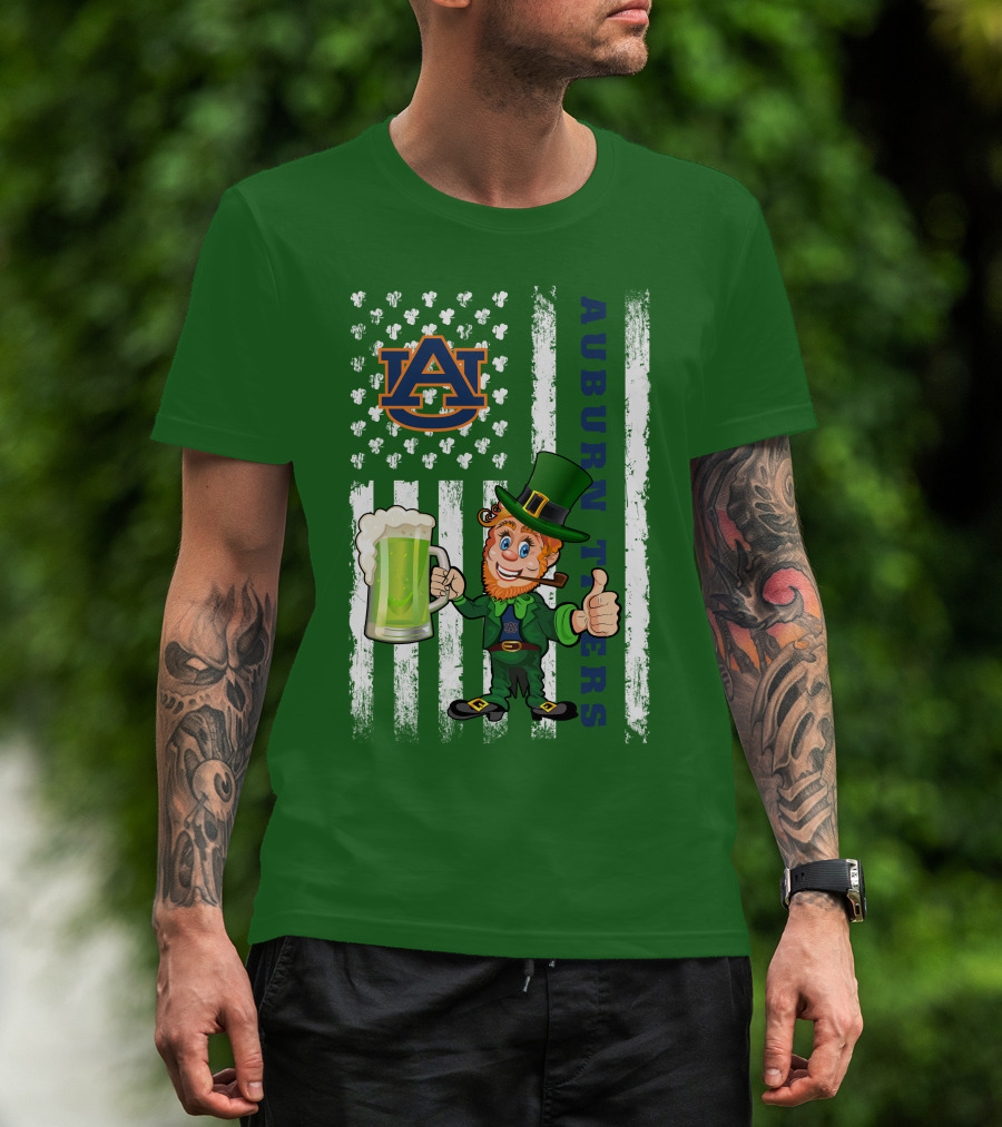 Auburn Tigers Leprechaun Holding Beer With Shamrocks St Patrick's Day T-Shirt