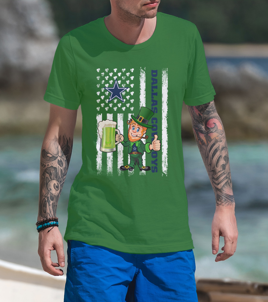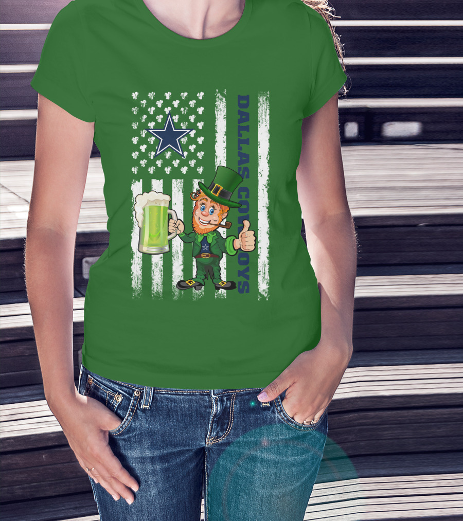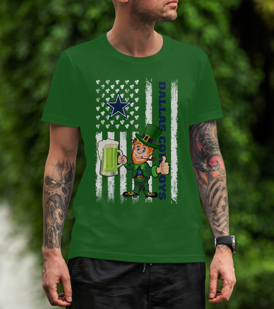 Dallas Cowboys St Patrick's Day Leprechaun Flag Beer Shamrocks Star T-Shirt