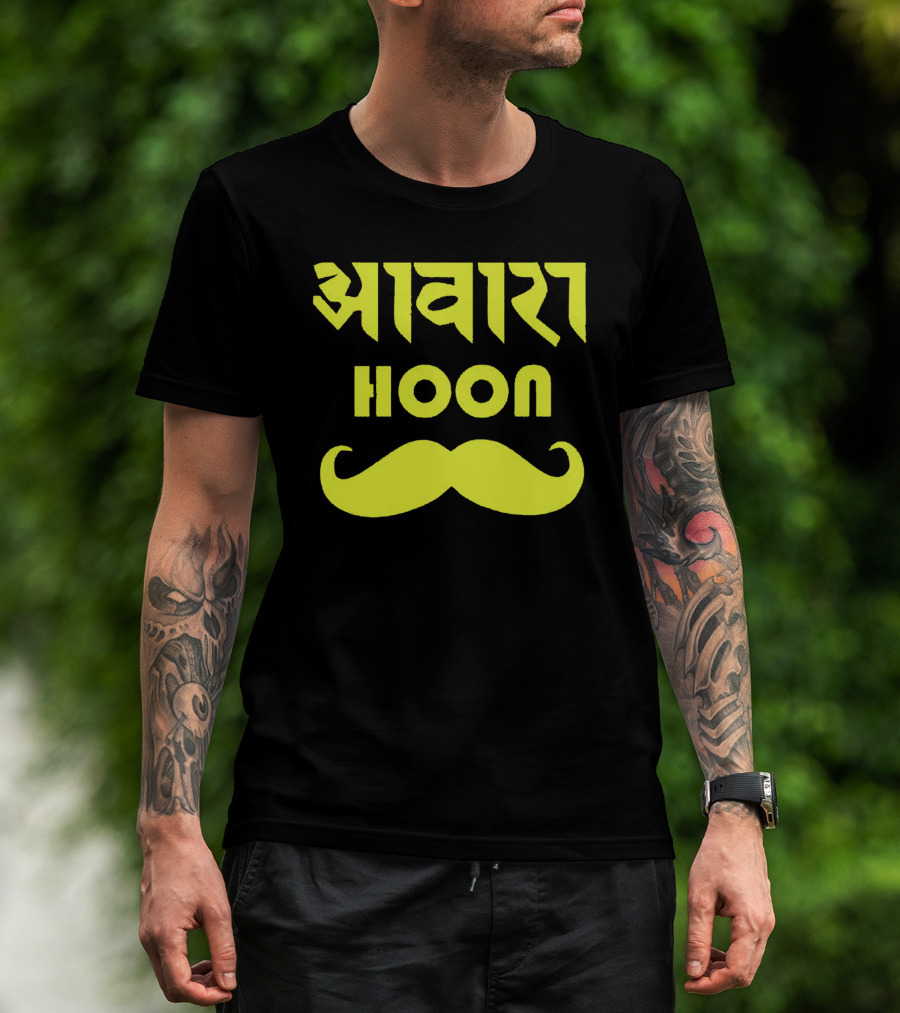 Awaara Hoon Hindi Text With Yellow Moustache T-Shirt
