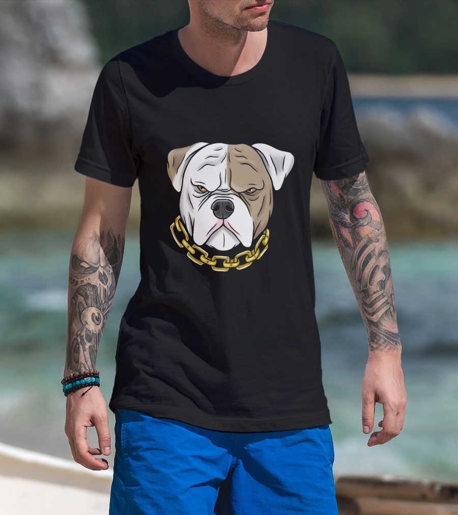 The Pitbull Head with Gold Chain T-shirt is designed for everyday wear and a consistent fit. Fabric is pre-shrunk ring-spun cotton with durable stitching. See the size chart below for exact measurements.