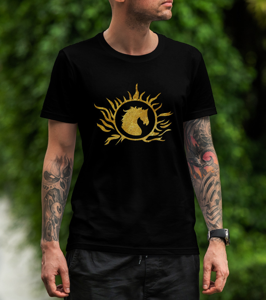 Bahubali Empire Gold Horse Head Sunburst T-Shirt