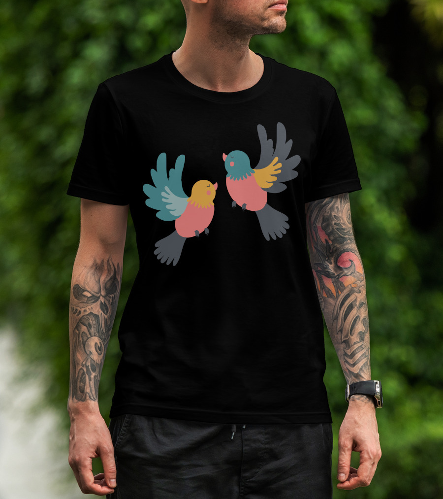 Pretty Birds Vibrant Colorful Avian Pair T-Shirt