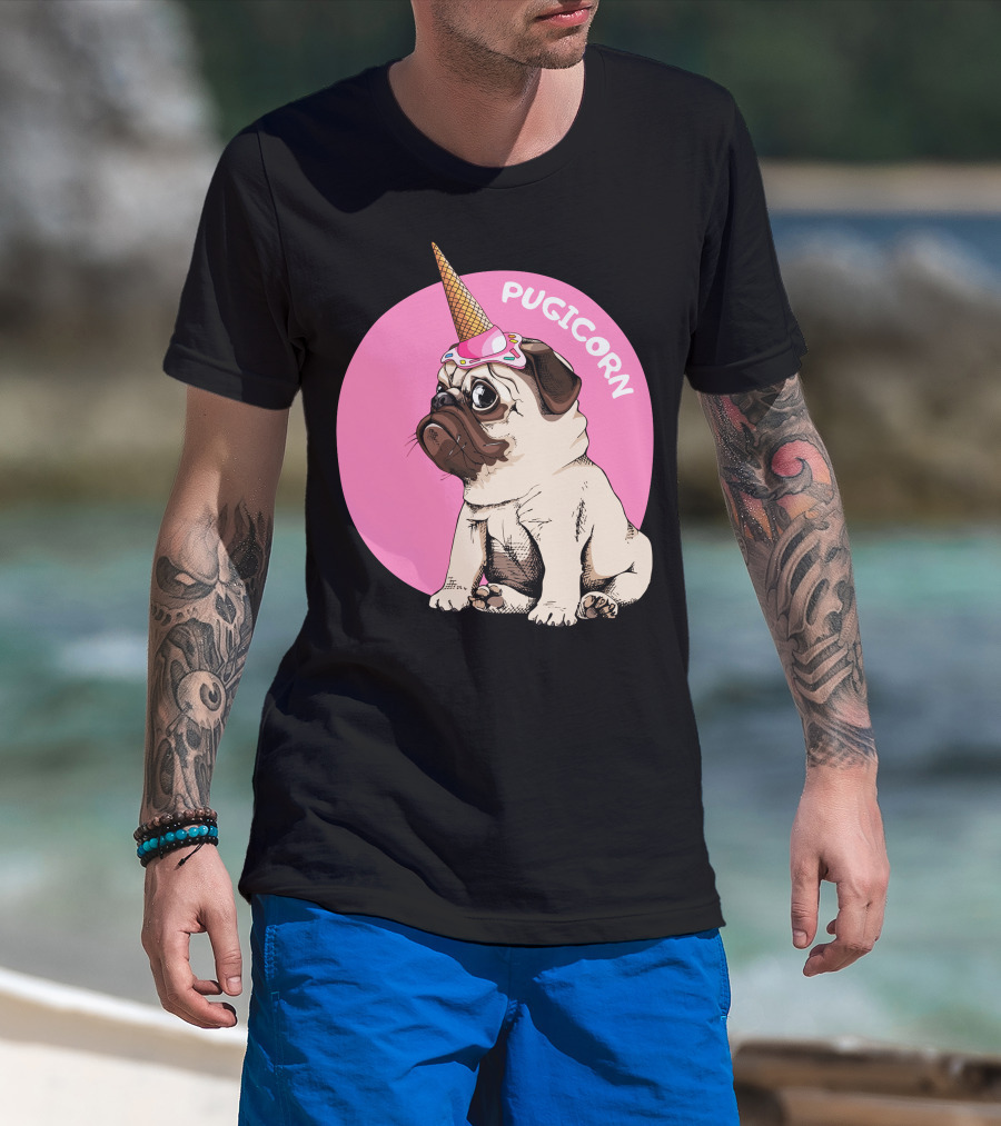 Pugicorn Ice Cream Cone Hat Cute Pug T-Shirt