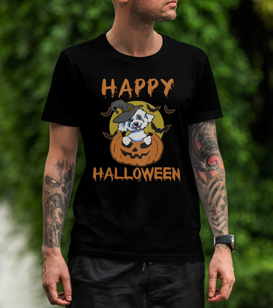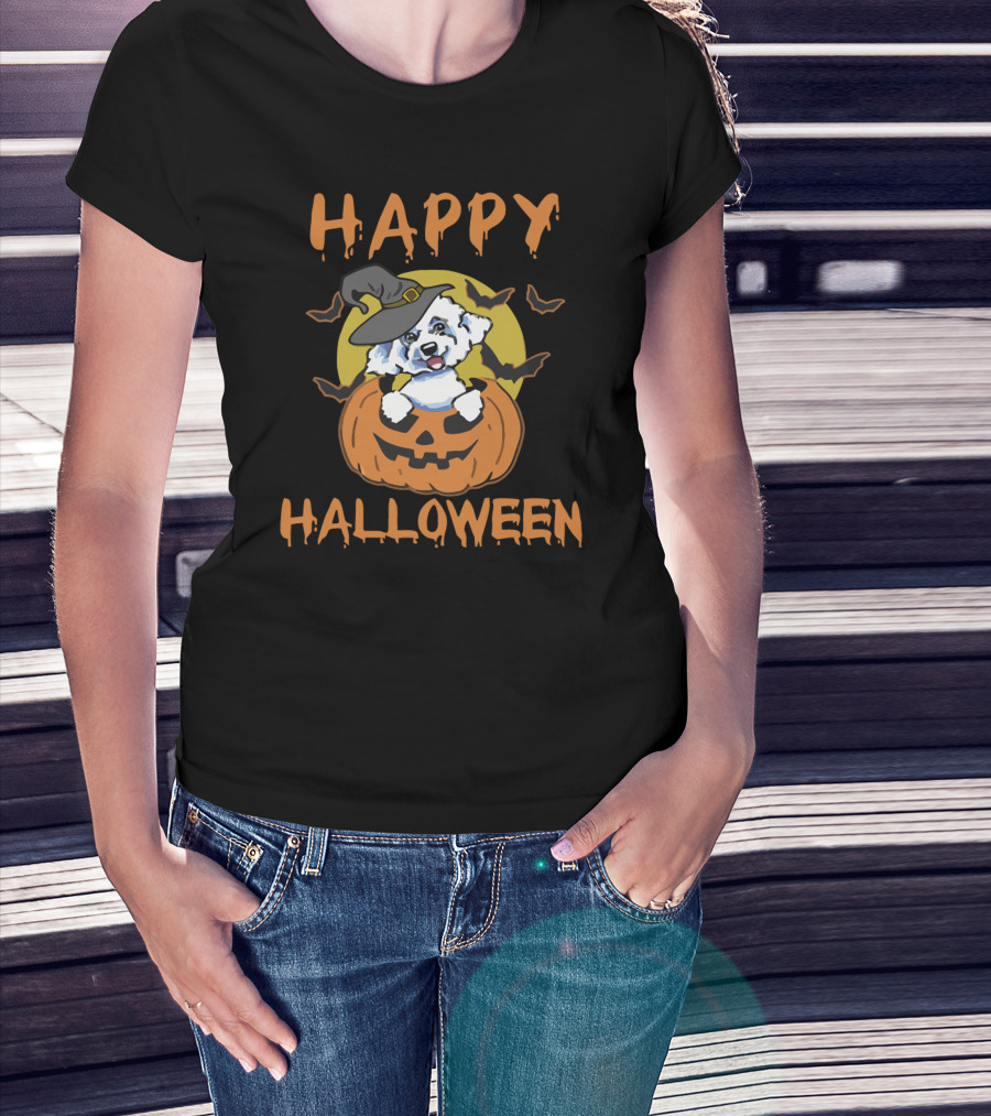 Happy Halloween Bichon Frise Pumpkin Witch Hat T-Shirt