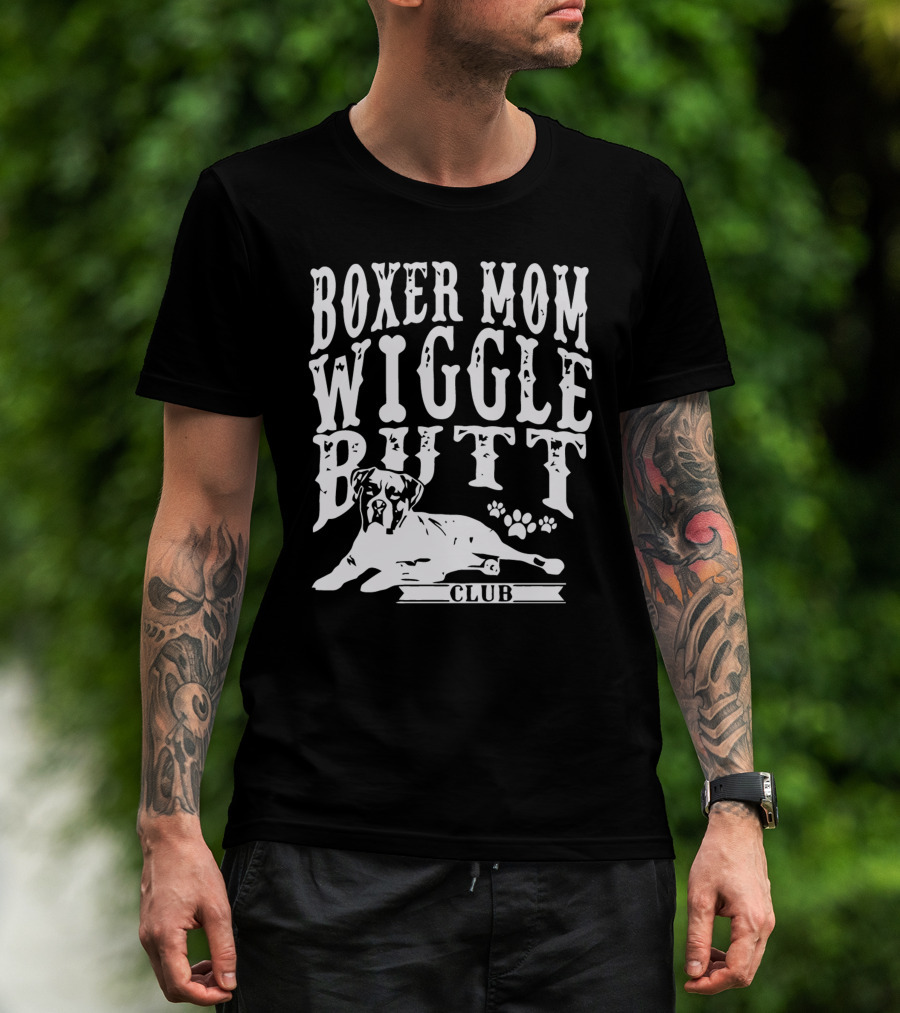 Boxer Mom Wiggle Butt Club Pawprint Dog T-Shirt