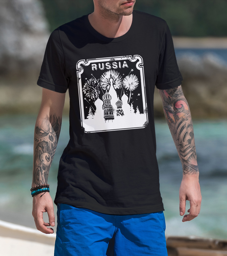The Russia Saint Basil's Cathedral Fireworks T-shirt is designed for everyday wear and a consistent fit. Fabric is pre-shrunk ring-spun cotton with durable stitching. See the size chart below for exact measurements.