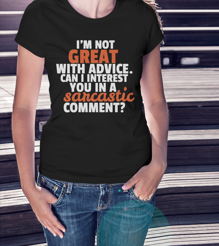 The I'M NOT GREAT WITH ADVICE CAN I INTEREST YOU IN A SARCASTIC COMMENT T-shirt is designed for everyday wear and a consistent fit. Fabric is pre-shrunk ring-spun cotton with durable stitching. See the size chart below for exact measurements.