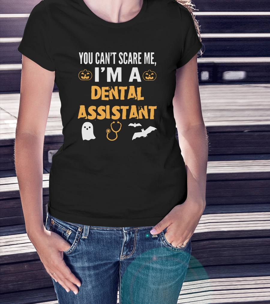 YOU CAN'T SCARE ME I'M A DENTAL ASSISTANT HALLOWEEN GHOST PUMPKINS BATS STOOL T-Shirt