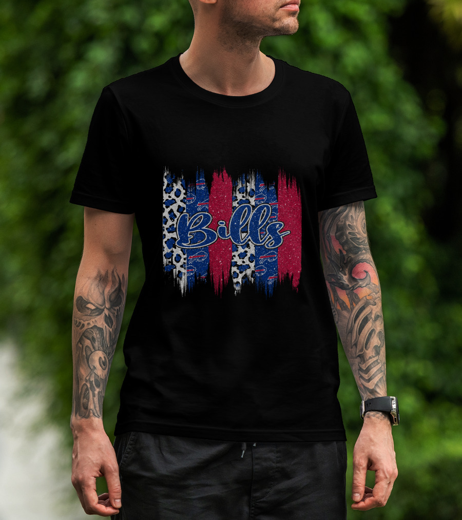 Bills Brushstroke Leopard Glitter Red Blue Stripes T-Shirt