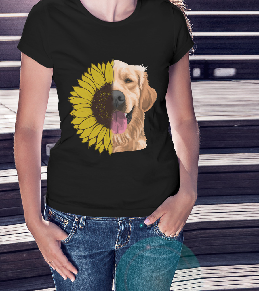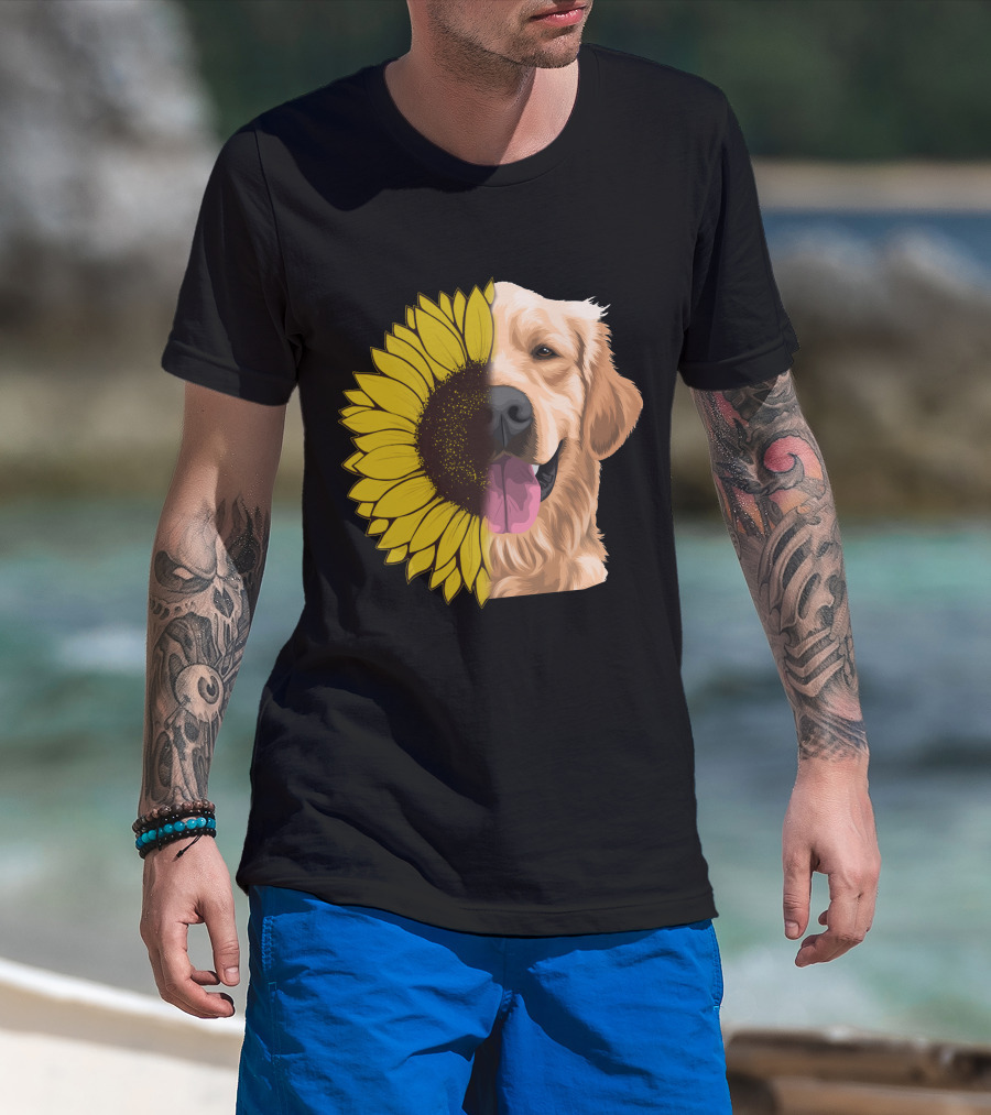 Golden Retriever Sunflower Half Face T-Shirt