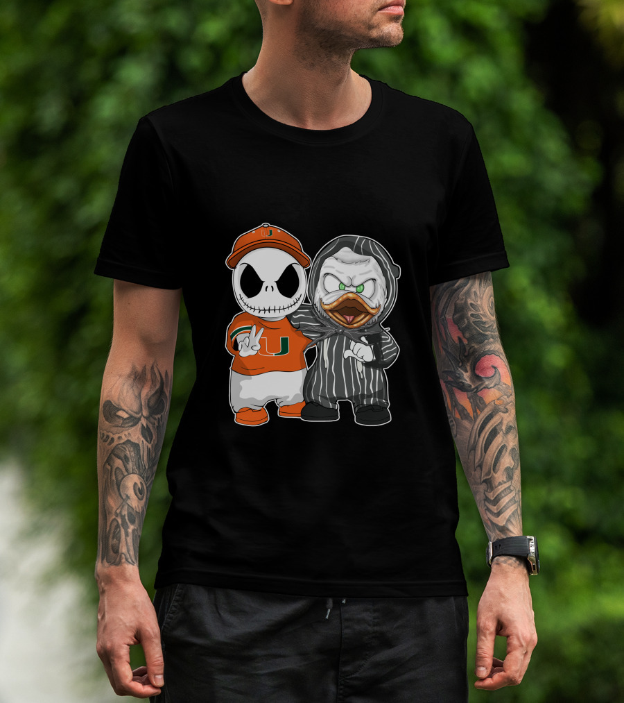 Miami Hurricanes Jack Skellington Oregon Ducks Crossover T-Shirt